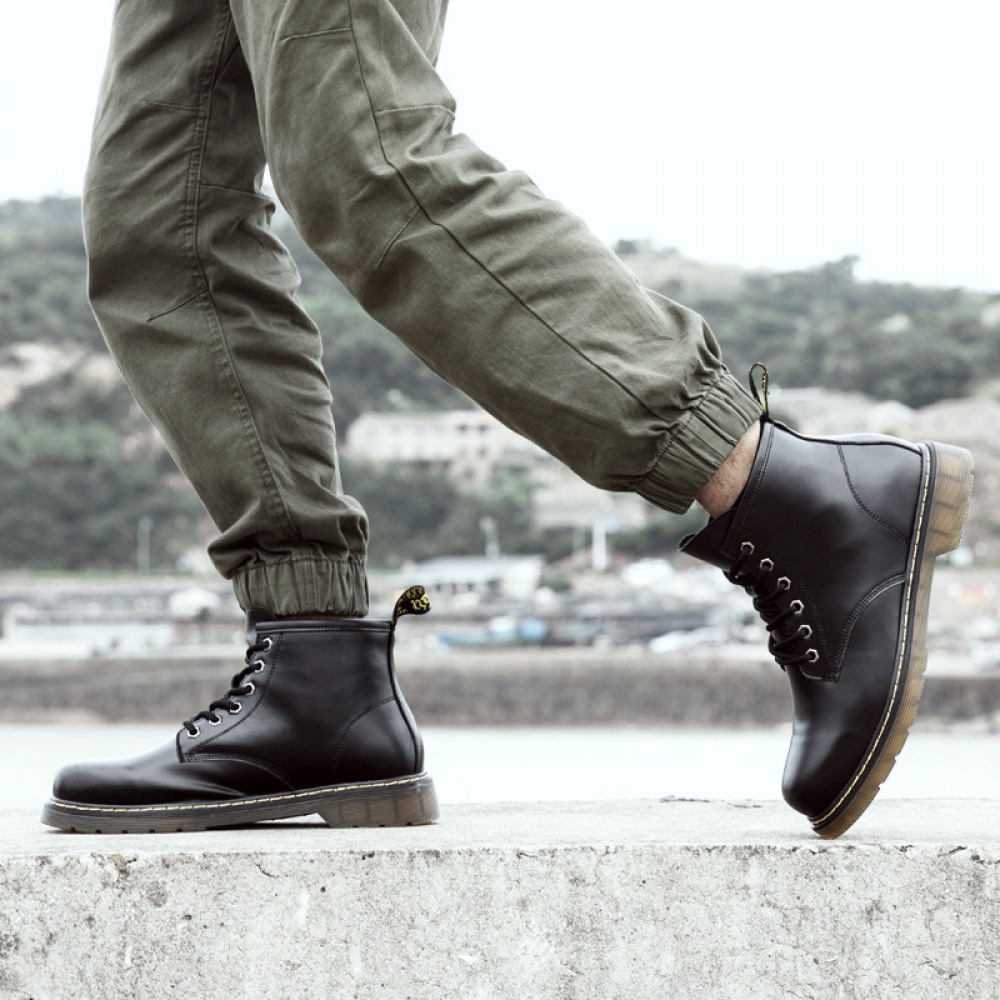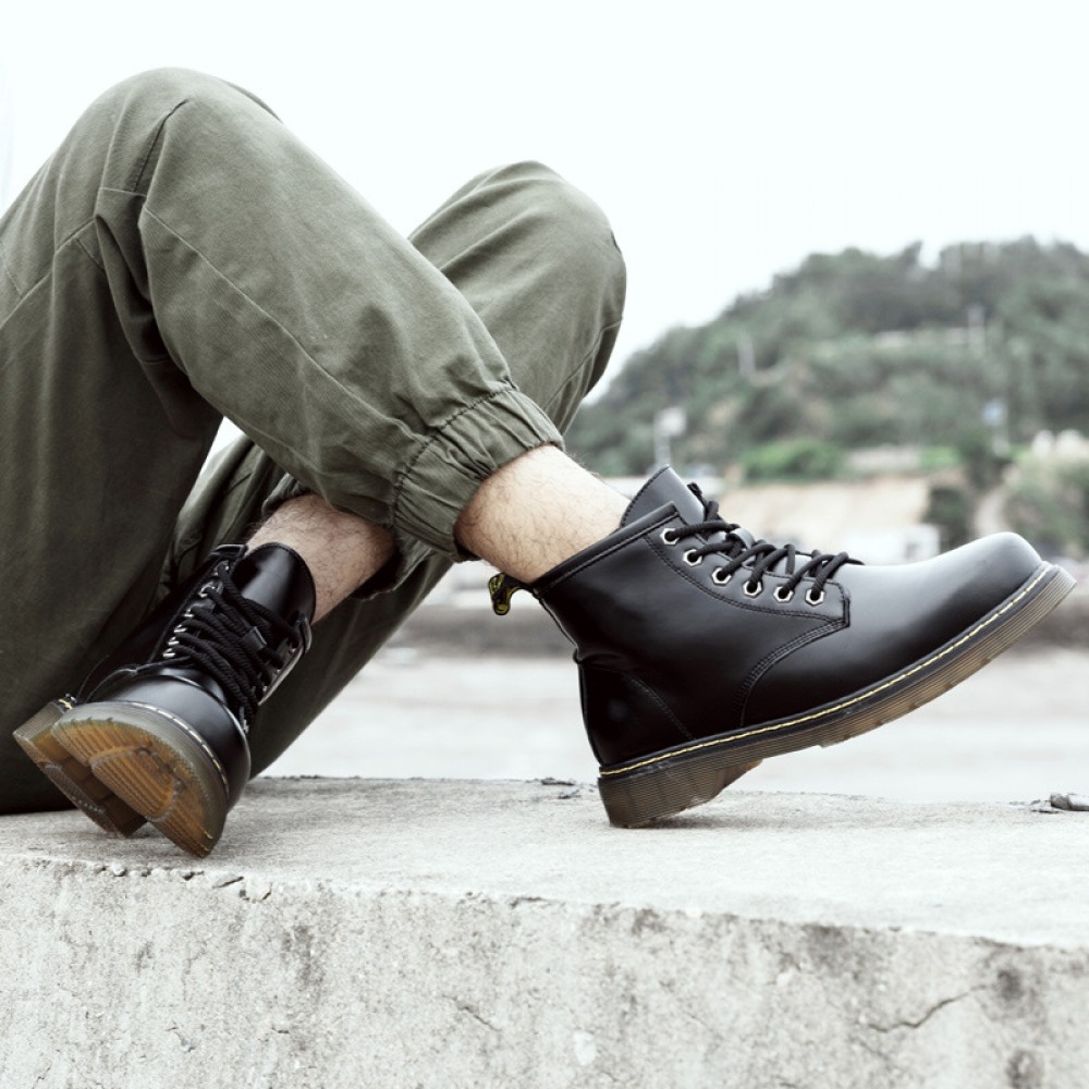 Men's British Style Tooling Boots Trend High-Top Shoes Casual Breathable Short Martin Boots