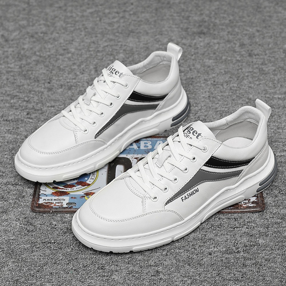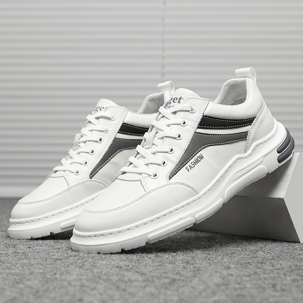 Men's Spring New Trendy Leather Casual White Sports Shoes